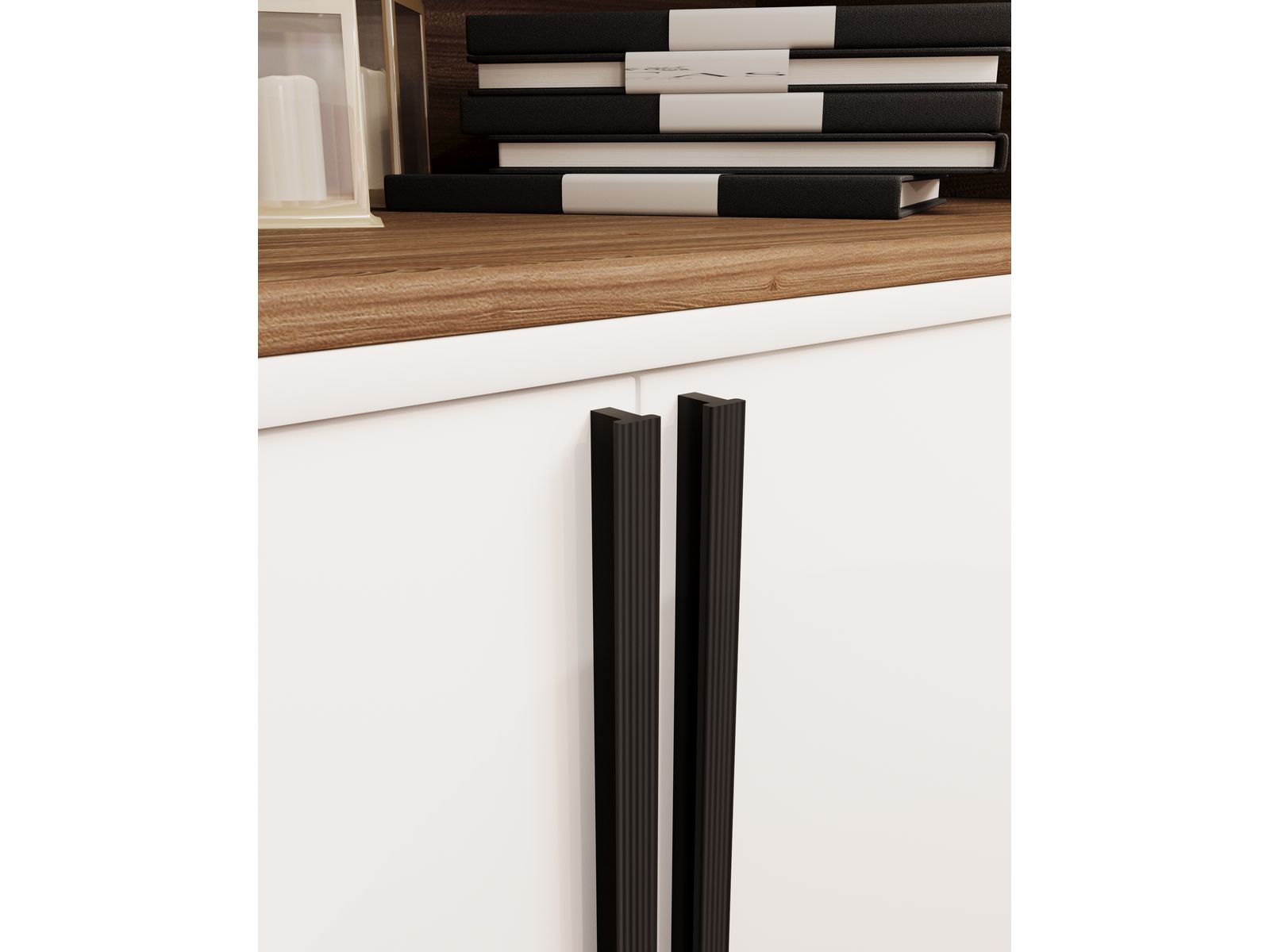Рельефная поверхность ручки 122 создаёт выразительный ритм и придаёт фасаду глубину и динамику. Благодаря продольным насечкам она легко читается в интерьере, но не перегружает композицию. Форма идеально сбалансирована — ручка удобна в захвате и подчёркивает линейность мебели.