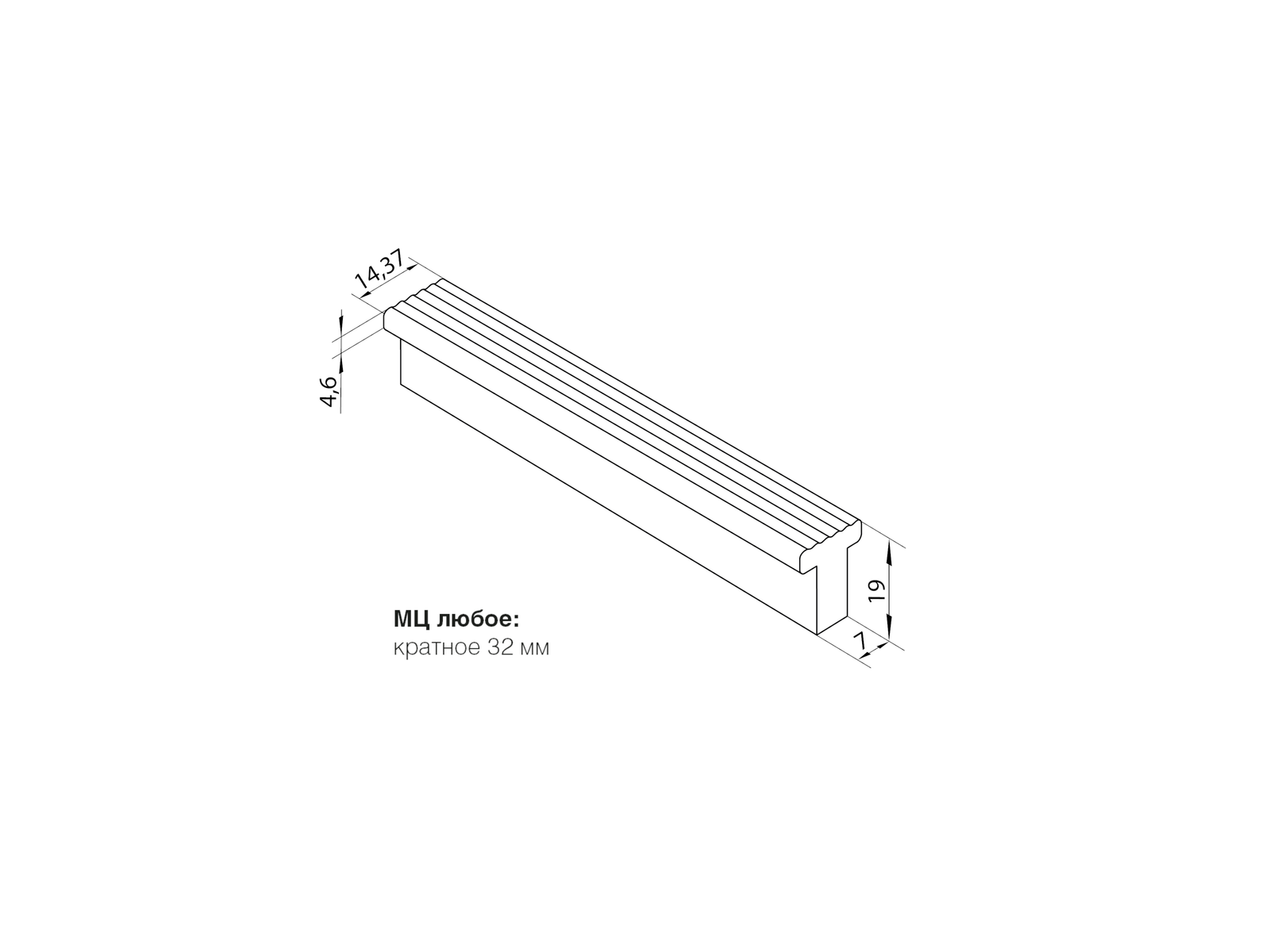 Может быть выполнена в любой длине, с межцентровым расстоянием кратным 32 мм.