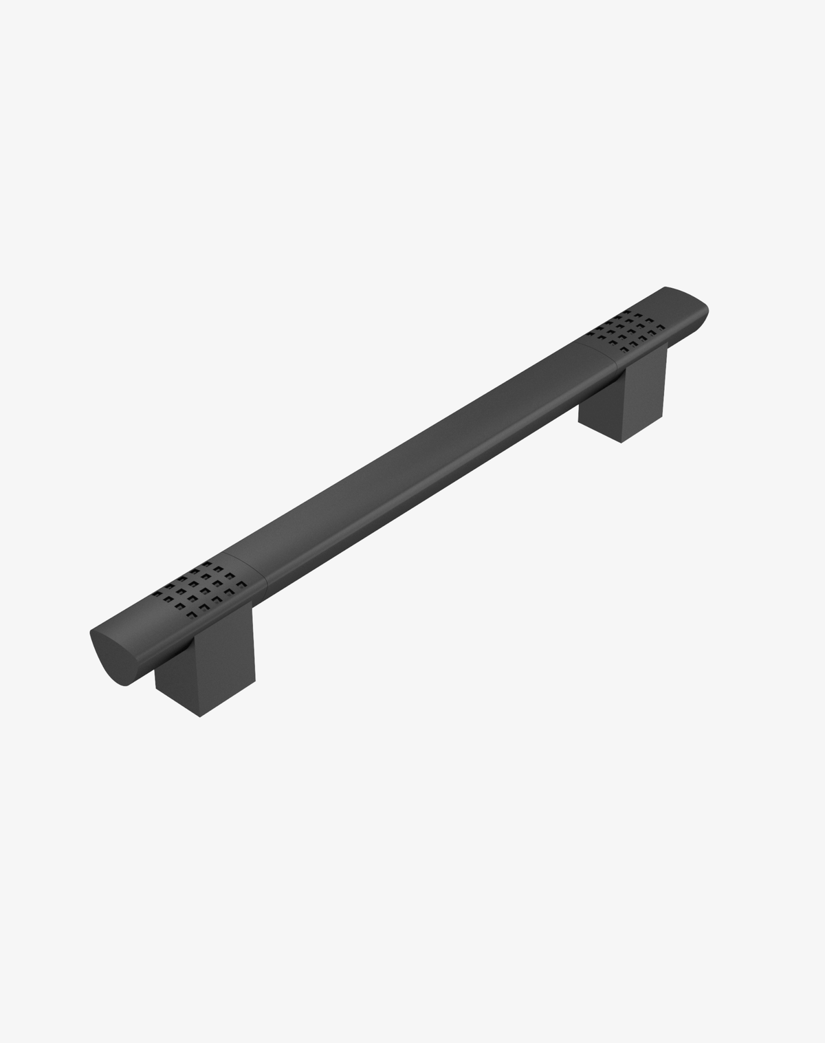 Массивный профиль, надежное крепление и геометрический декор с обеих сторон придают модели характерный индустриальный облик, который будет уместен и в хай-теке, и в неоклассике. Форма ручки эргономична: удобно захватывать с любой стороны, даже влажными руками.