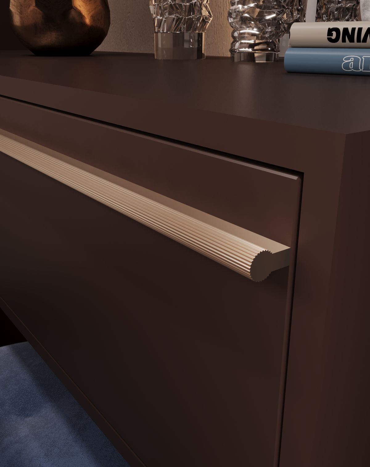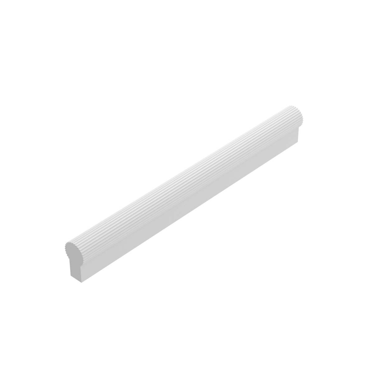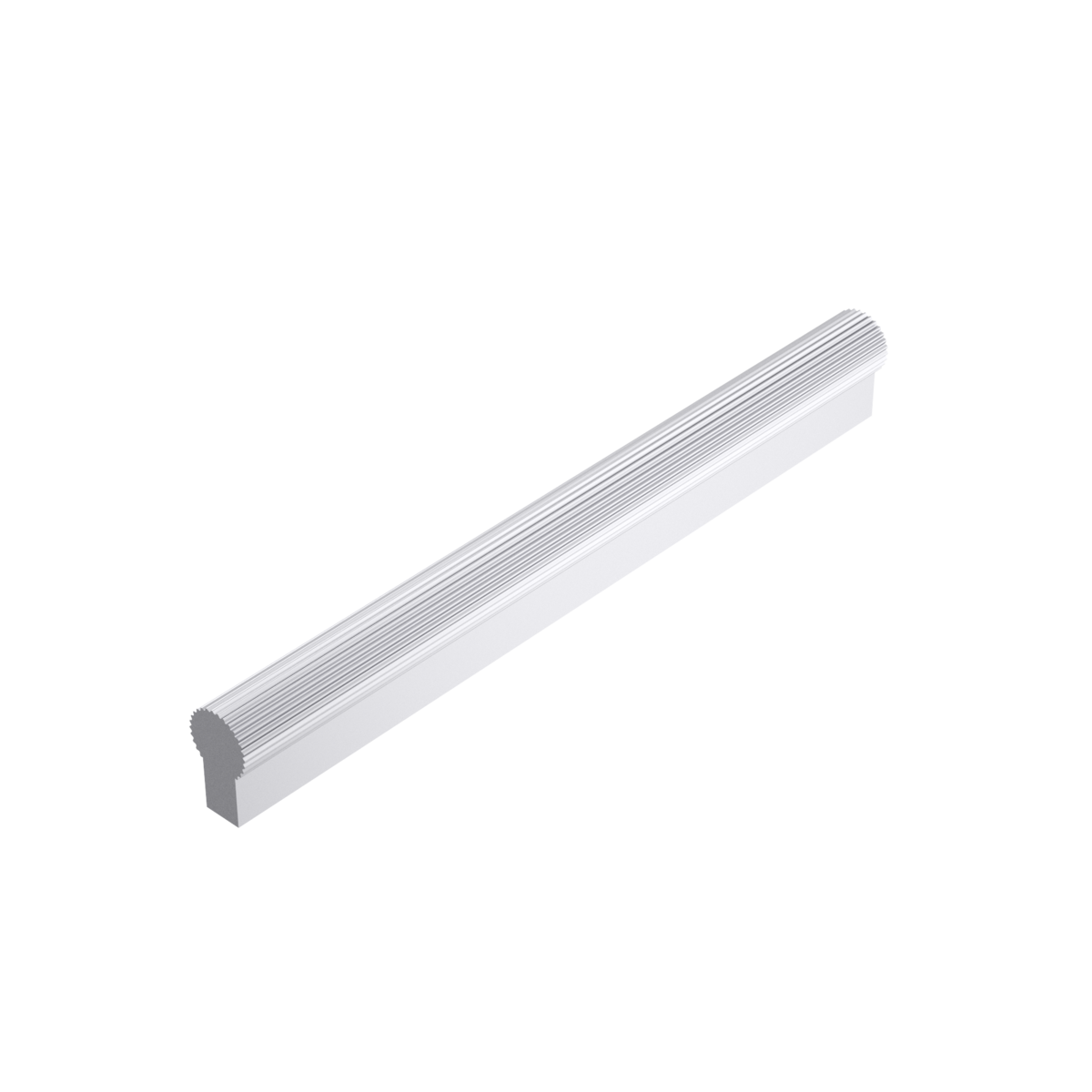 Продольное рифление, плавный полукруглый профиль и чёткие пропорции делают эту ручку ярким элементом современного интерьера. Она идеально подойдёт как для гладких однотонных фасадов, так и для текстурной или матовой мебели, добавляя композиции тактильность и характер.