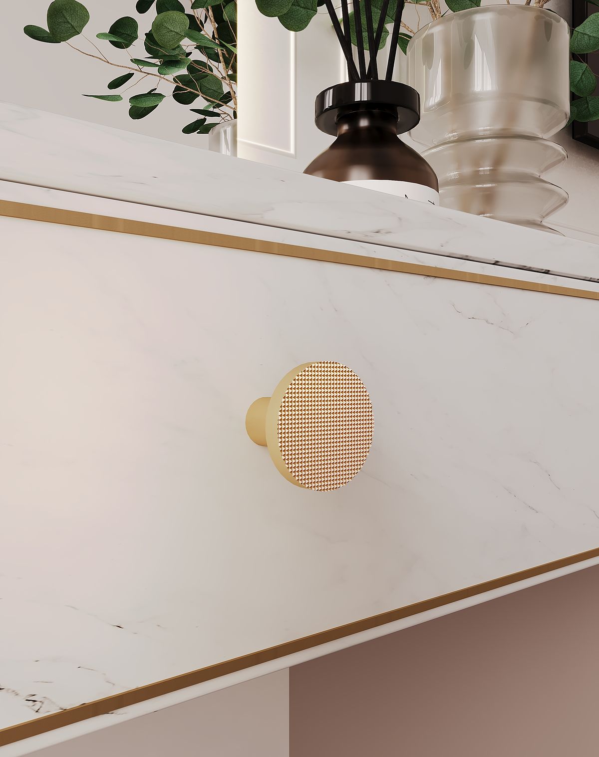 Ручка легко устанавливается и подходит для шкафов, комодов, тумб, создавая стильный акцент на ровных фасадах. Выпускается в нескольких цветах: от благородного металлика до тёплого матового золота.