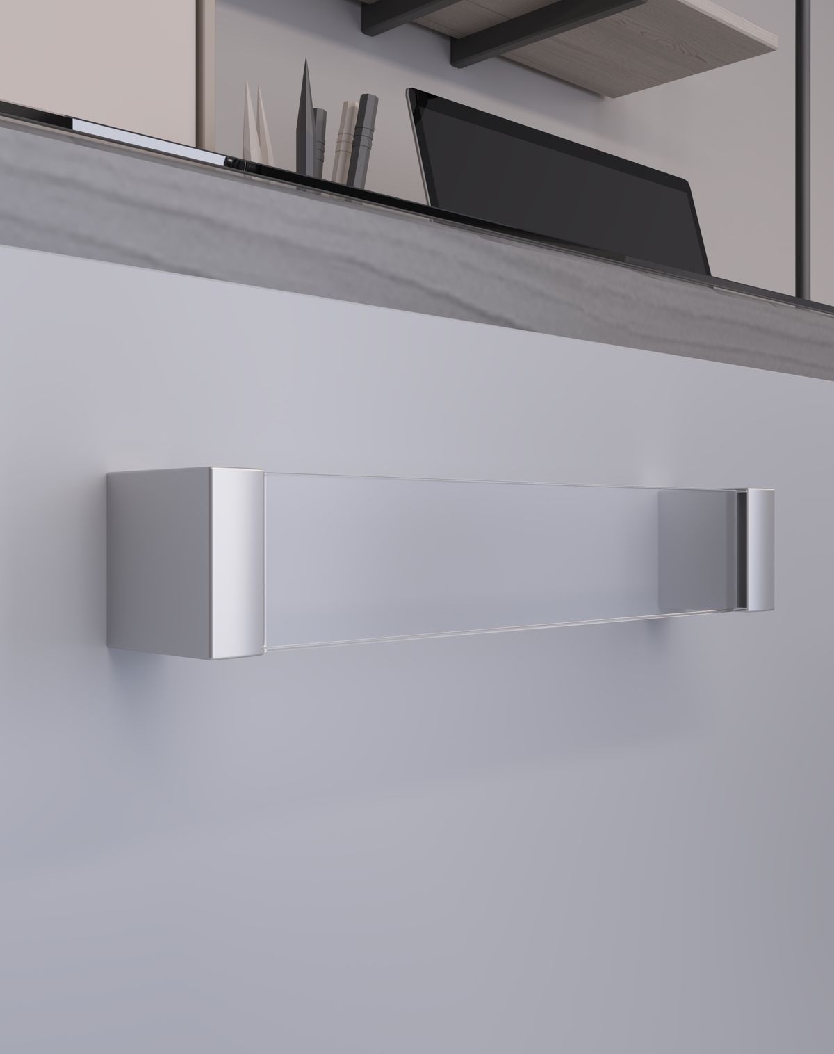 Благодаря эргономичному захвату и прочной конструкции, ручка 83 сочетает эстетику и практичность. Такой дизайн особенно уместен в мебели с геометричными фасадами и контрастными сочетаниями материалов — например, дерево и стекло, металл и камень.
