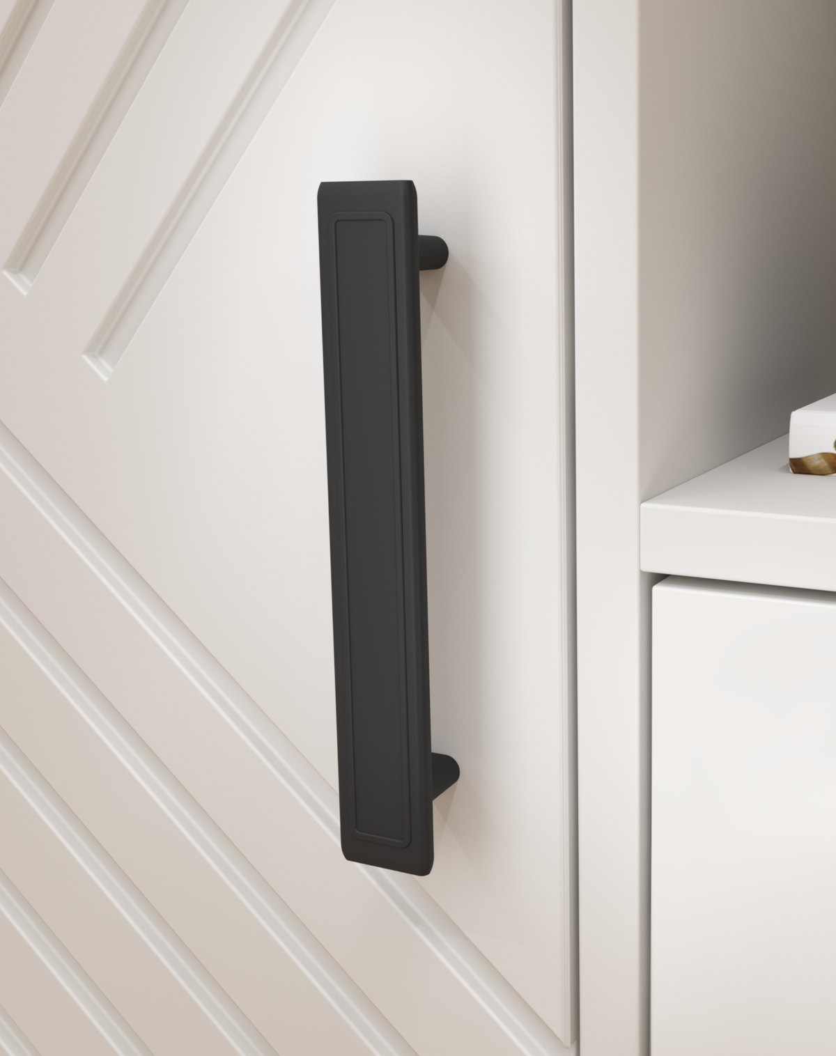 Ручка изготовлена из прочного ABS-пластика. Её лаконичный силуэт делает модель универсальной — она одинаково хорошо смотрится на кухонных шкафах, комодах и тумбах.